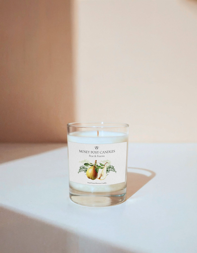 20cl hand poured scented beeswax glass container candle. Average burn time of a beeswax 20cl candle is between 40-45 hours.