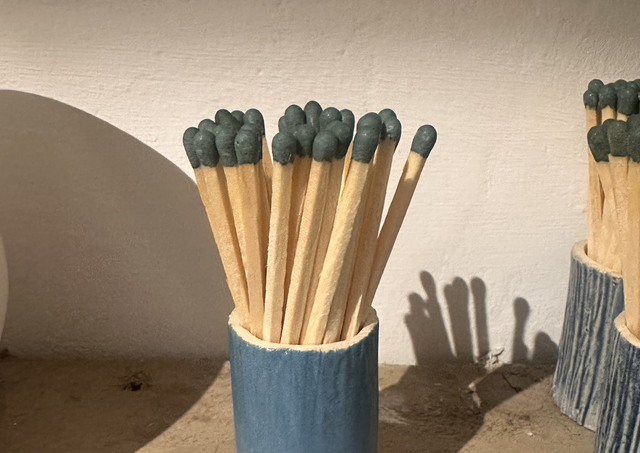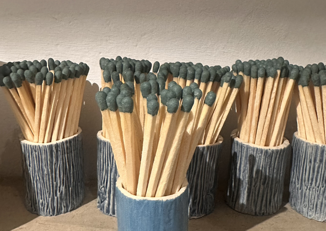 Handmade Ceramic Match Pot with Striker and Sage Green Matches