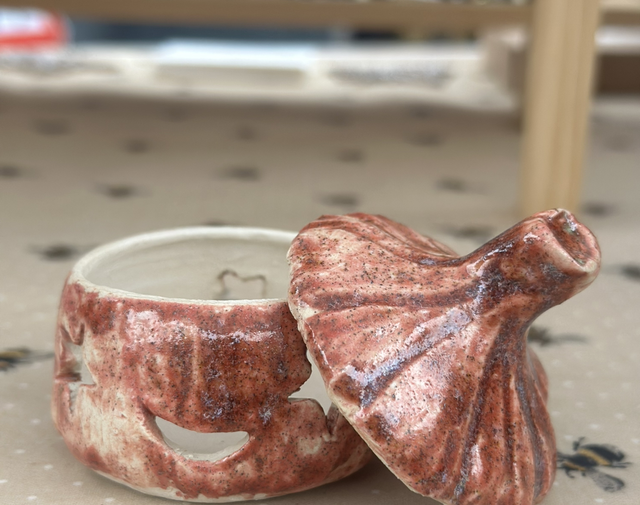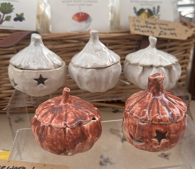 Pumpkin stoneware handmade tea light holder available in a dove grey and burnt orange. Please note that they are hand built so each pumpkin varies slightly in design. They hold one tea light.
